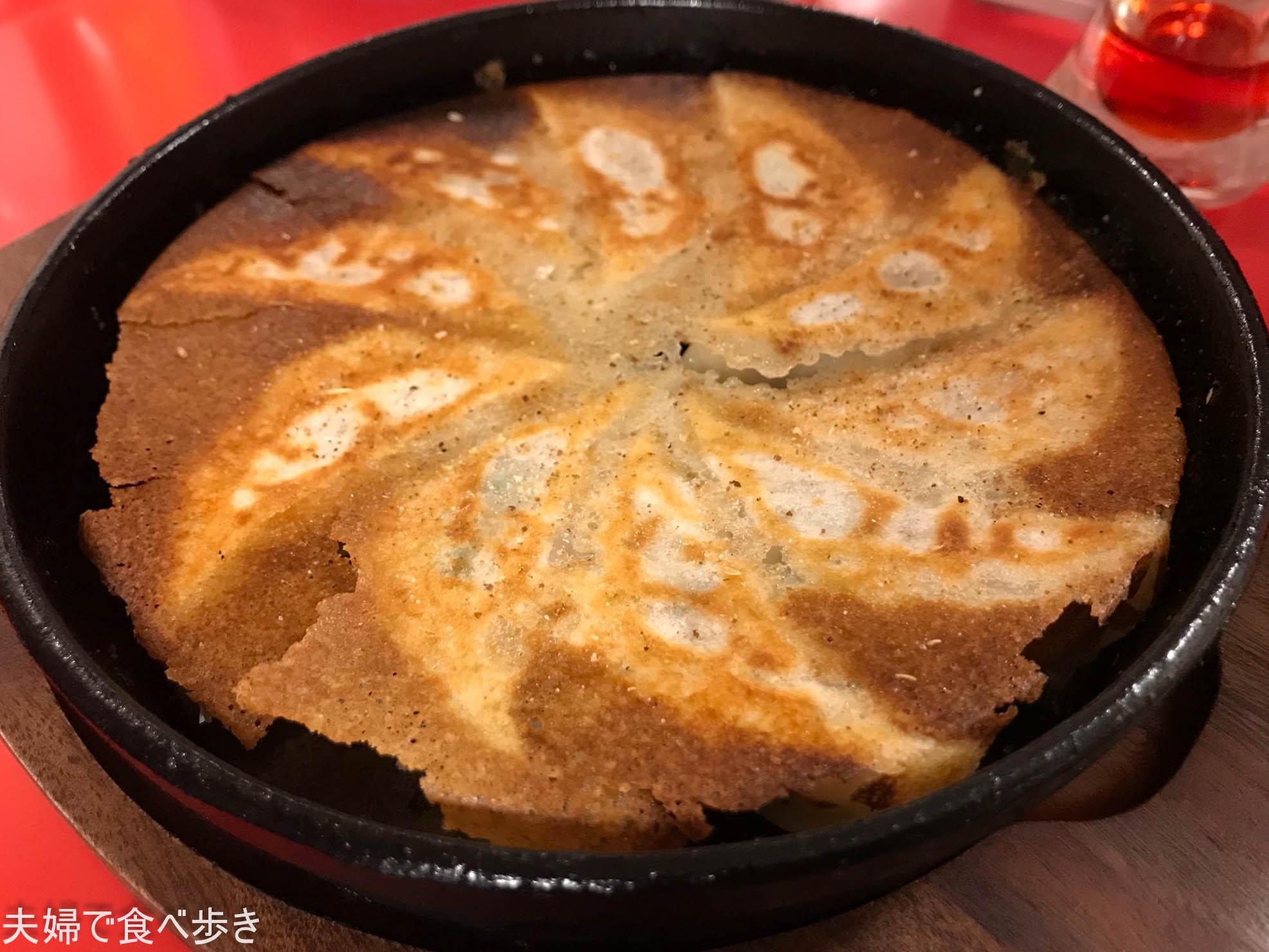 カウンターに腰掛けて、生ビールを注文しつつ、鉄鍋餃子をお願いした。