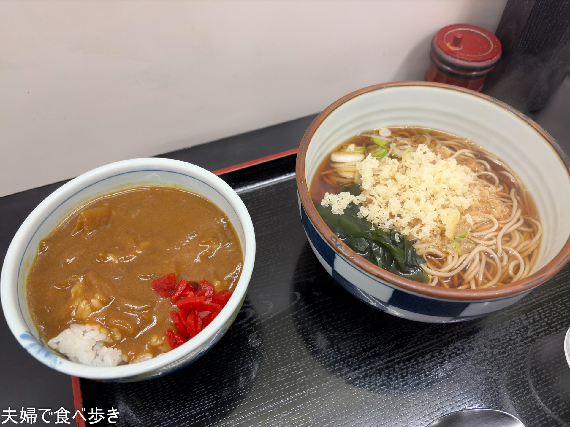 カレーは甘口、カウンターにある一味を振って刺激を追加する。そばつゆとカレーとの相性を確かめる。つゆの旨みがカレーに幅を持たせるように思う。やはり、カレーとそばは、一緒に食べるのがいいね。